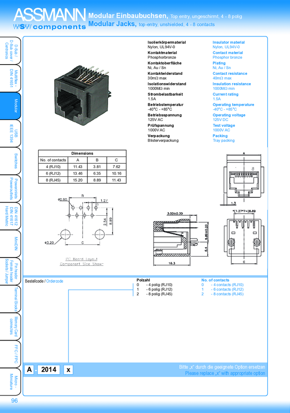 ASSMANN WSW A-20140 złącze żeńskie do wbudowania pionowego RJ10 ASSMANN WSW A-20140 A-20140 złącze żeńskie do wbudowania