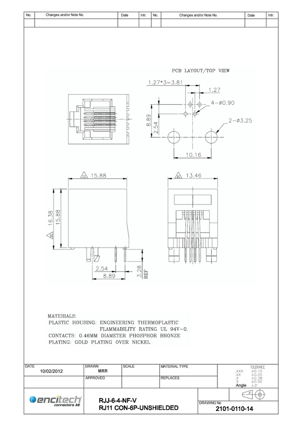 encitech RJJ-64NF-V złącze żeńskie do wbudowania pionowego RJ11 encitech RJJ-64NF-V 2101-0110-14 złącze żeńskie do wbudo