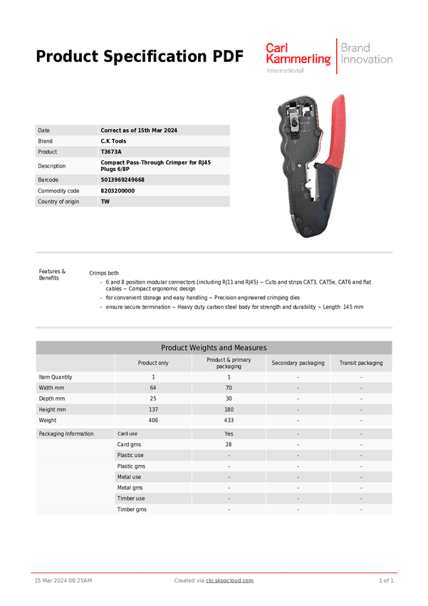 C.K T3673A T3673A Zaciskarka RJ11, RJ45