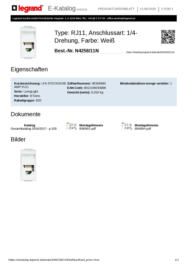 Legrand Złącze RJ11 Living&Light biały N4258/11N 1 szt.