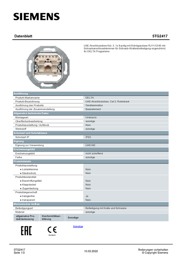 Gniazdo przyłączeniowe UAE kat. 3, 1x 8-pinowe z gniazdem skośnym RJ11/12/45 ze śrubą.