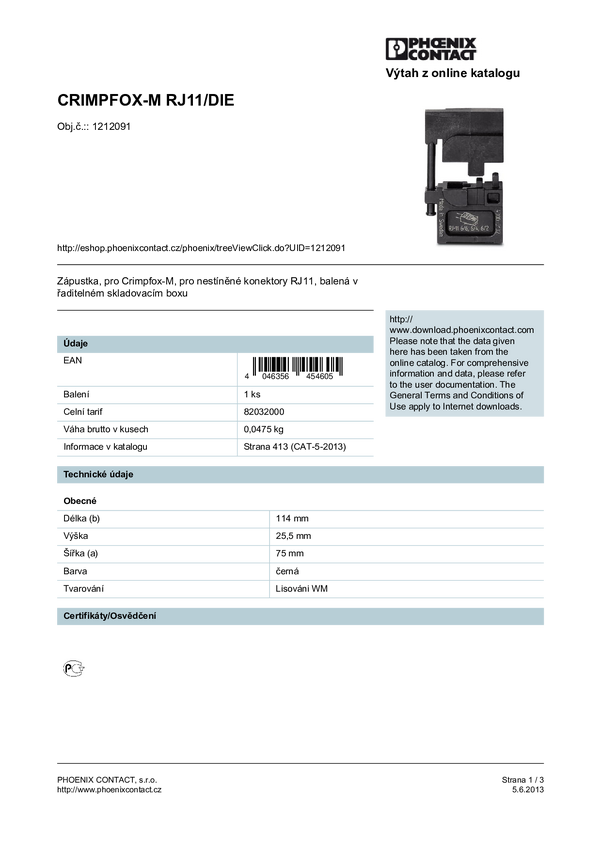 Matryca do zaciskarki Phoenix Contact CRIMPFOX-M RJ11/DIE 1212091
