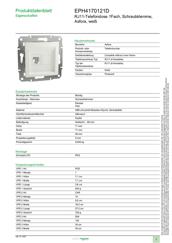 Schneider Electric Gniazdo telefoniczne RJ11 Asfora biały (RAL 9003) EPH4170121D 1 szt.