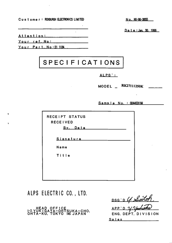 Potencjometr audio podwójny 2x100k Alps zamiennik RK27112M C-S20-C0-A104 char.Audio 15A-logarytmiczna, ośka FL-25MM silnik 4-6V, szybkość: 12 s kąt 300 stopni przy 4,5V nadruk 336G ( produkcja 2003 36 tydzień) 100KAX2 =RK27112MC030