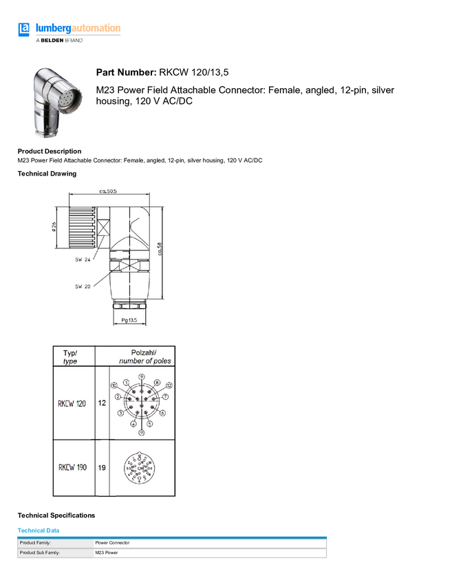 Złącze niekonfekcjonowane czujnika/aktuatora Lumberg Automation RKCW 120/13,5 2072-SR, piny: 12, 1 szt.