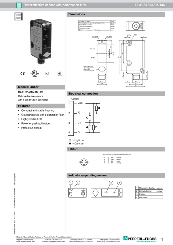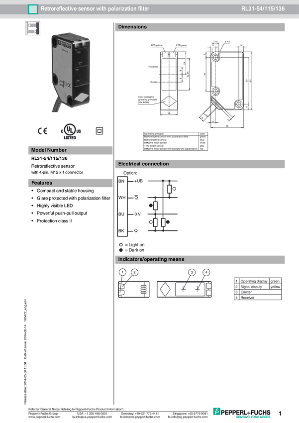 Czujnik fotoelektryczny Pepperl+Fuchs RL31-54/115/136 186472 1 szt.