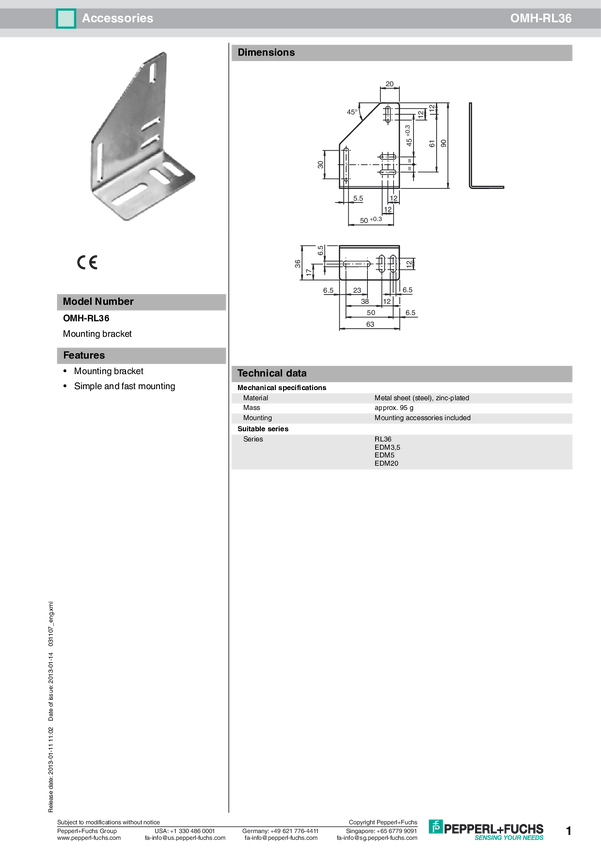 Akcesorium montażowe Pepperl+Fuchs OMH-RL36 Montag 031107 5 szt.