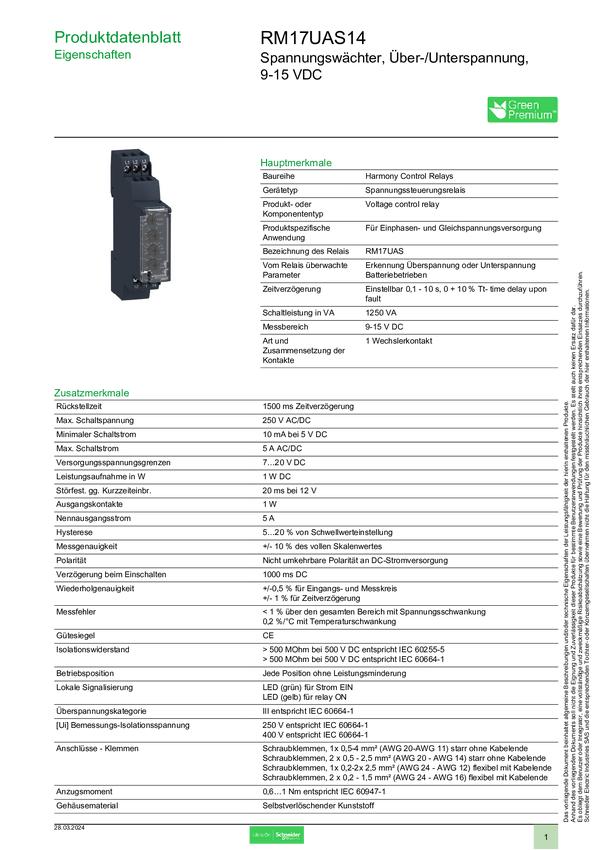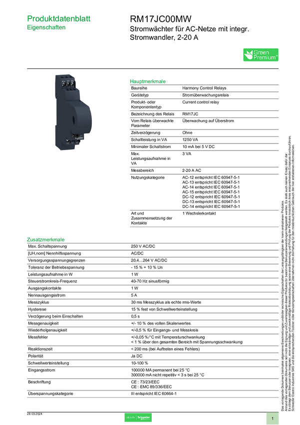 Przekaźnik nadzorczy Schneider Electric RM17JC00MW 1 szt.