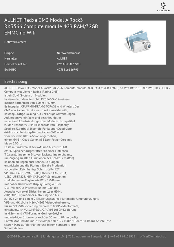 Rock 3 Moduł obliczeniowy Radxa 4 GB 2.0 GHz