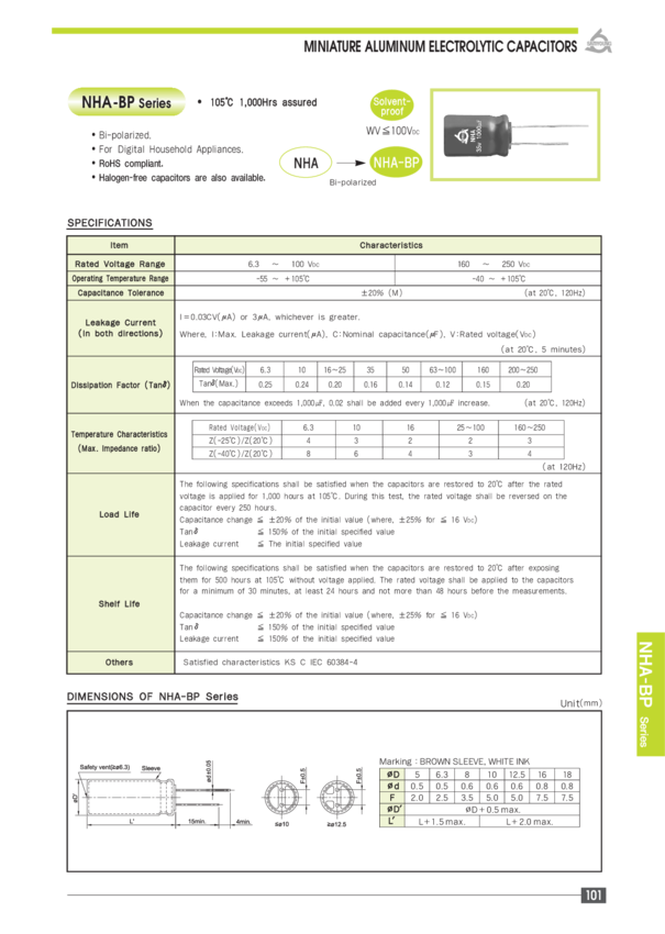 CENHA-BP 10uF-35V /5x11/ Kondensator elektrolityczny bipolarny 105C, 1000h, RM2,0
