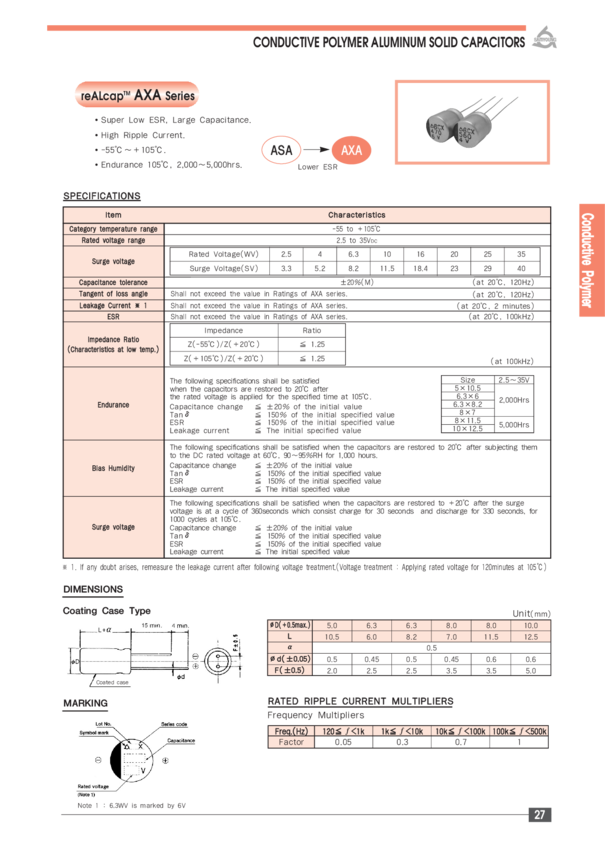 CEAXA 820uF-6,3V /8x11,5/ Kondensator polimerowy 105C, LI, 5000h, RM3,5