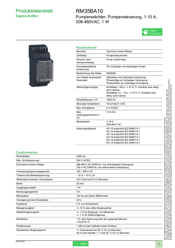 Schneider Electric RM35BA10 Przekaźnik przełączający do pompy, 1 szt.