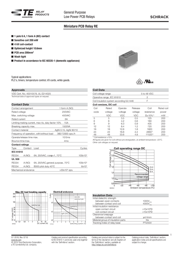 Przekaźnik; elektromagnetyczny; RE034012; 12V DC; 6A/250V; 1 styk zwierny SPST-NO; na PCB; TE Connectivity; 2-1416010-6; = RM40-Z-12; RM40-3021-85-1012; JE-112DMN; RoHS