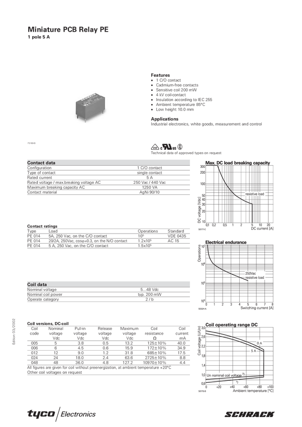 Przekaźnik; elektromagnetyczny; PE014005; 5V DC; 5A/250V; 1 styk przełączny SPDT; na PCB; TE Connectivity; = RM40-P-05; RM40-2011-85-1005; RoHS