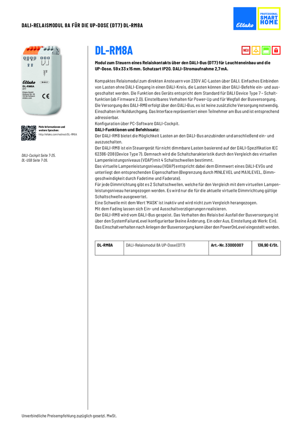 DL-RM8A Eltako Element wykonawczy podtynkowy Maksymalna moc przełączania 1000 W