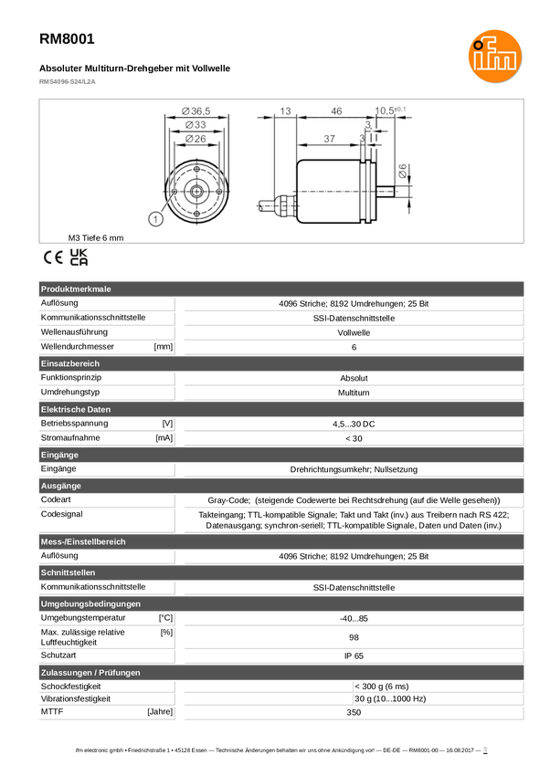 Enkoder obrotowy absolutny ifm Electronic RM8001