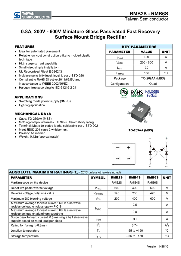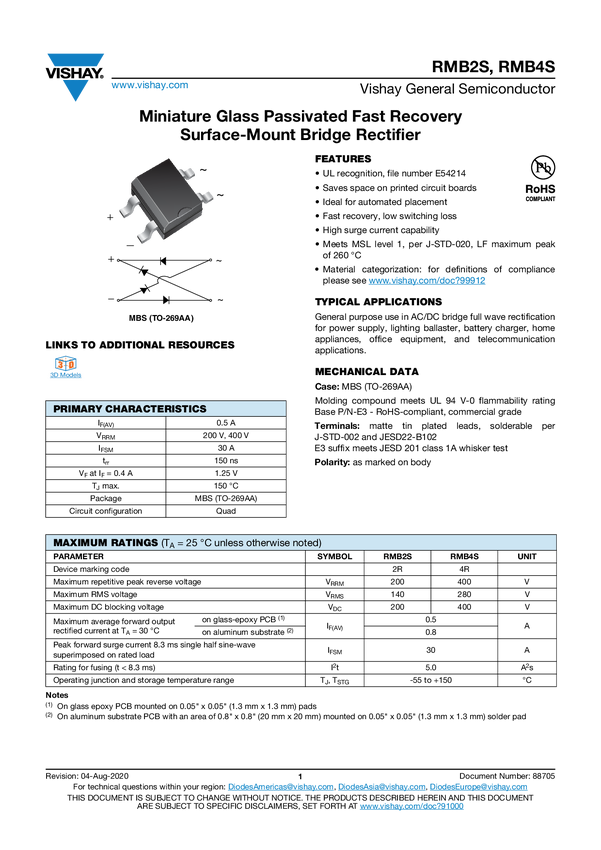 Miniature Glass Passivated Fast Recovery Surface-Mount Bridge Rectifier