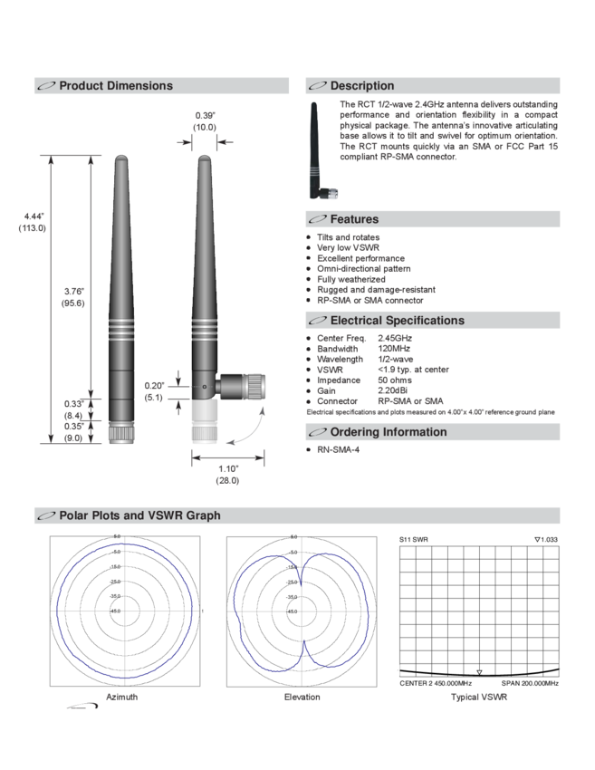 Antena 2,4 GHz RPSMA Microchip Technology RN-SMA-S-RP