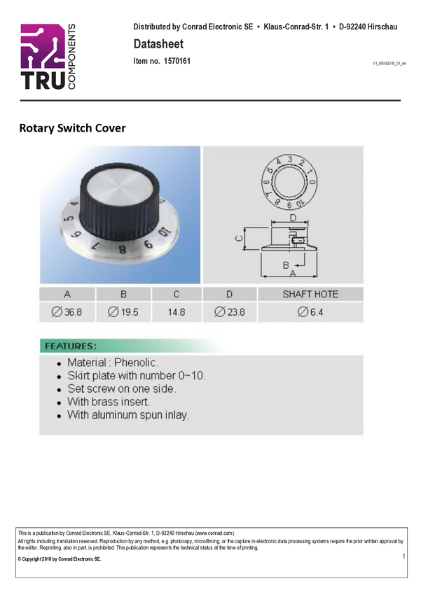 TRU COMPONENTS 709024 RN-114A Pokrętło ze skalą aluminiowy (Ø x W) 36.8 mm x 14.8 mm 1 szt.