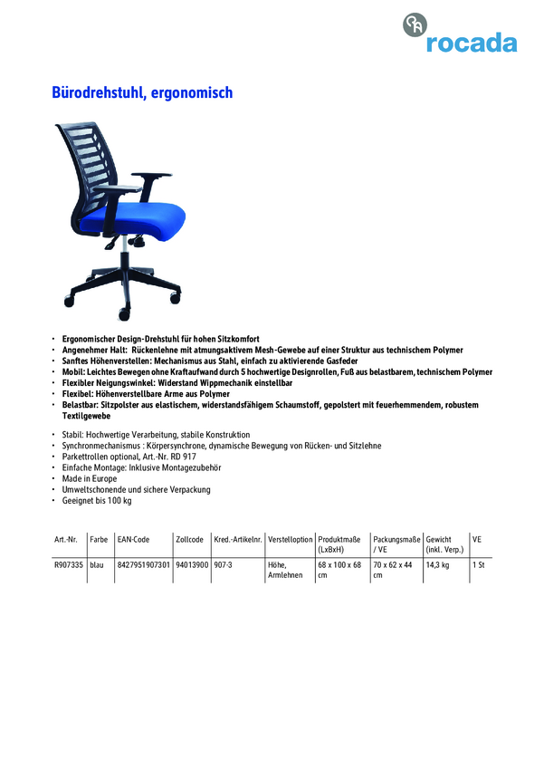 Krzesło biurowe Rocada 907-3 R907335, 1 szt.
