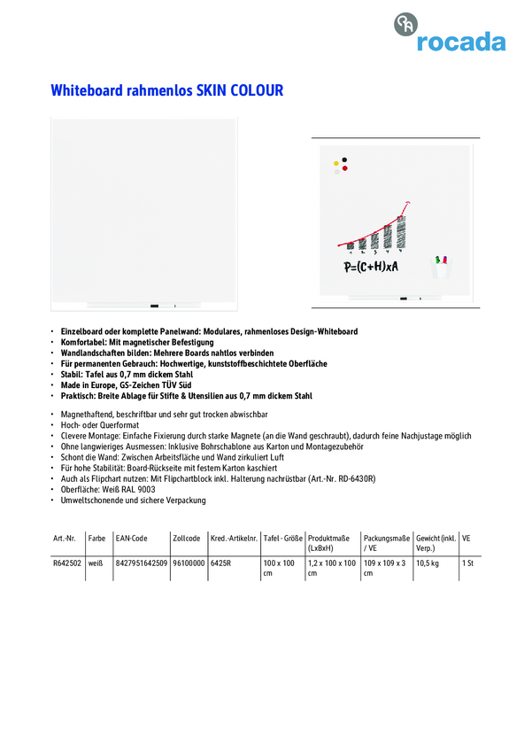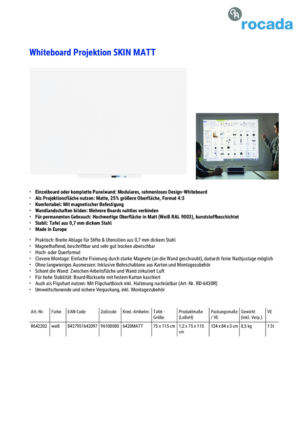 Tablica suchościeralna Rocada 6420MATT (S x W) 115 cm x 75 cm