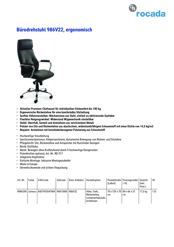 Rocada Krzesło biurowe 986V22 czarny, chrom R986290 1 szt.