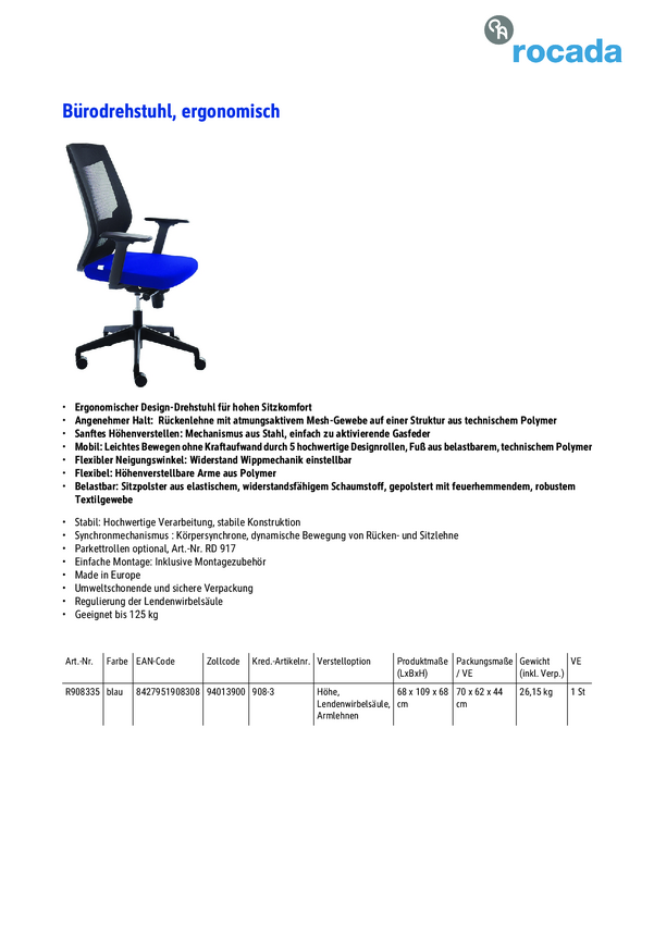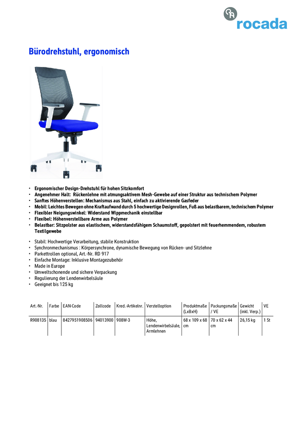 Krzesło biurowe Rocada 908W-3 R908135, 1 szt.