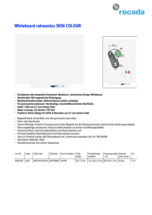 Tablica suchościeralna Rocada 6419R (S x W) 75 cm x 55 cm