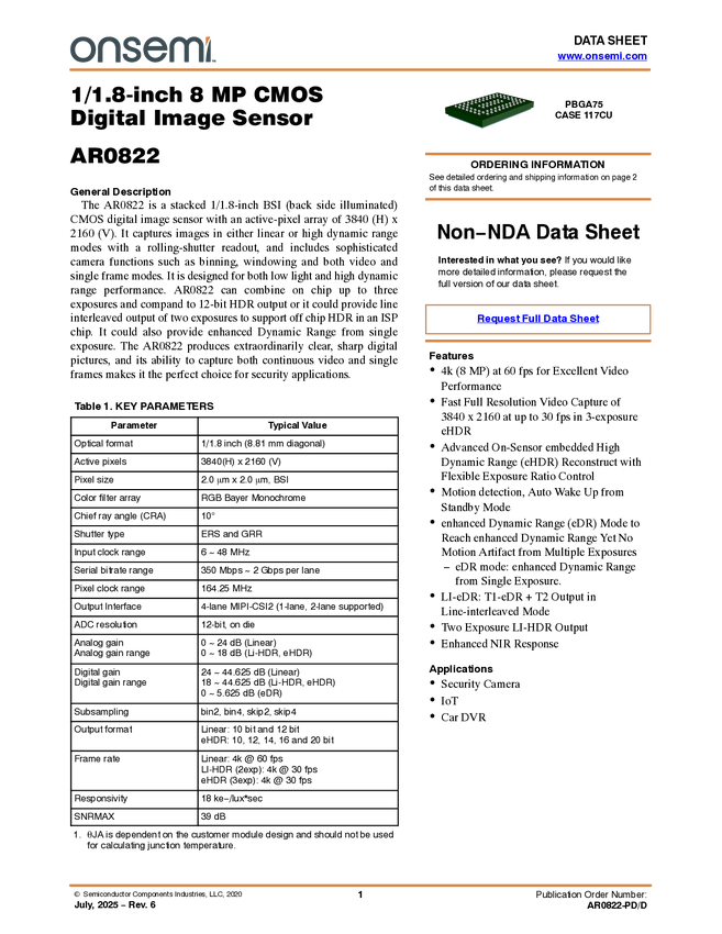Image Sensor, 8.3 MP, Rolling Shutter, Hyperlux™ LP