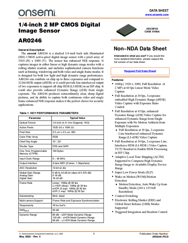 Image Sensor, 5 MP, Rolling Shutter, Hyperlux™ LP