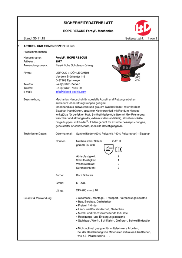 Rękawice montażowe FerdyF. Rope Rescue 1977-8, Rozmiar rękawic: 8, M, czerwony, czarny