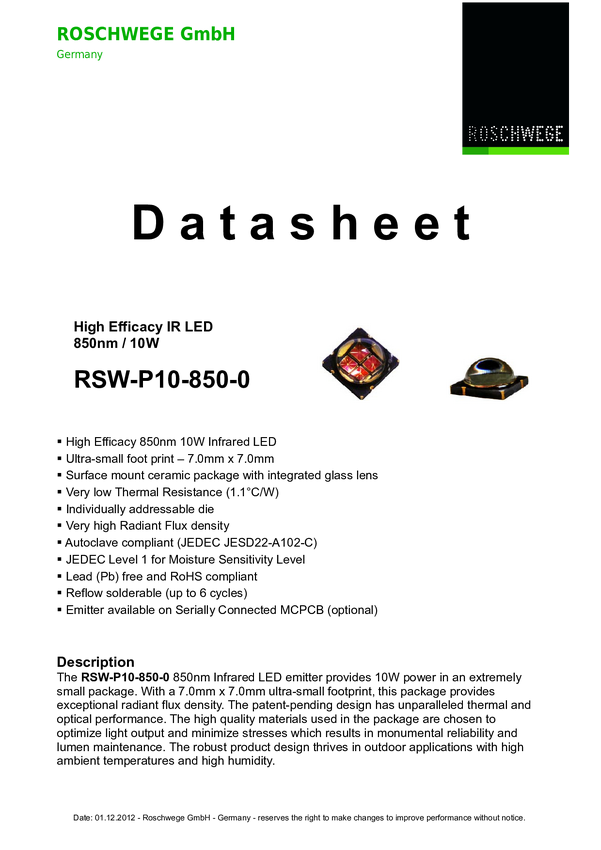 Roschwege Gwiazda-IR850-10-00-00 Nadajnik IR 850 nm 95 ° kształt specjalny SMD