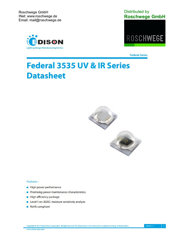 Dioda Dioda LED HighPower Roschwege LSC-W3000K ciepły biały 94 lm 115 ° 3.5 V