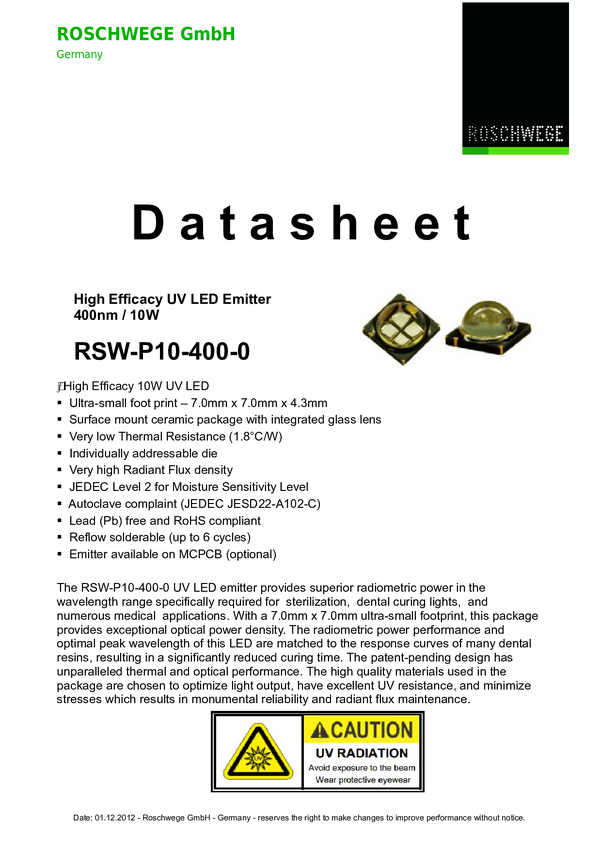 Dioda Dioda LED HighPower Roschwege LSC-W5000K biały 100 lm 115 ° 3.5 V