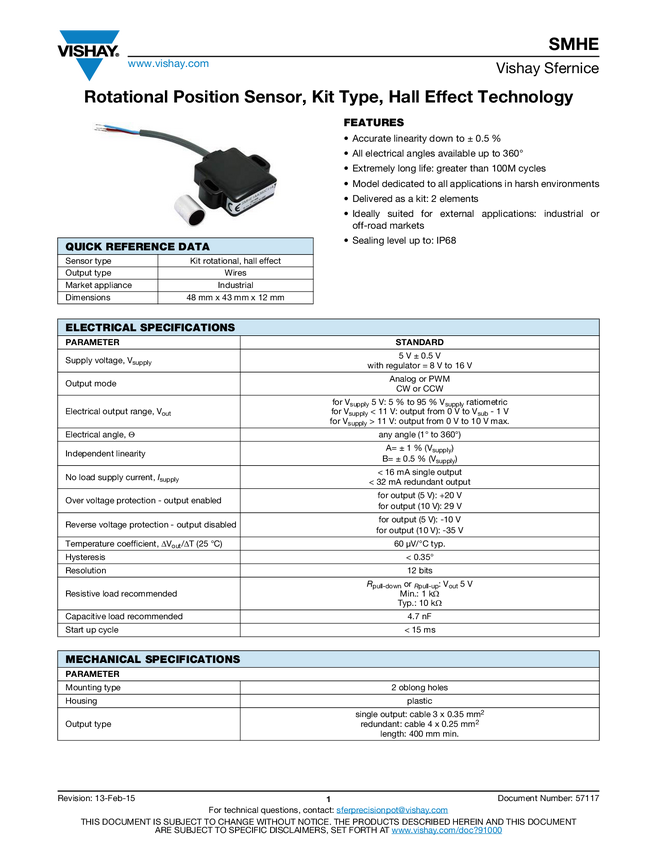 Rotational Position Sensor, Kit Type, Hall Effect Echnology
