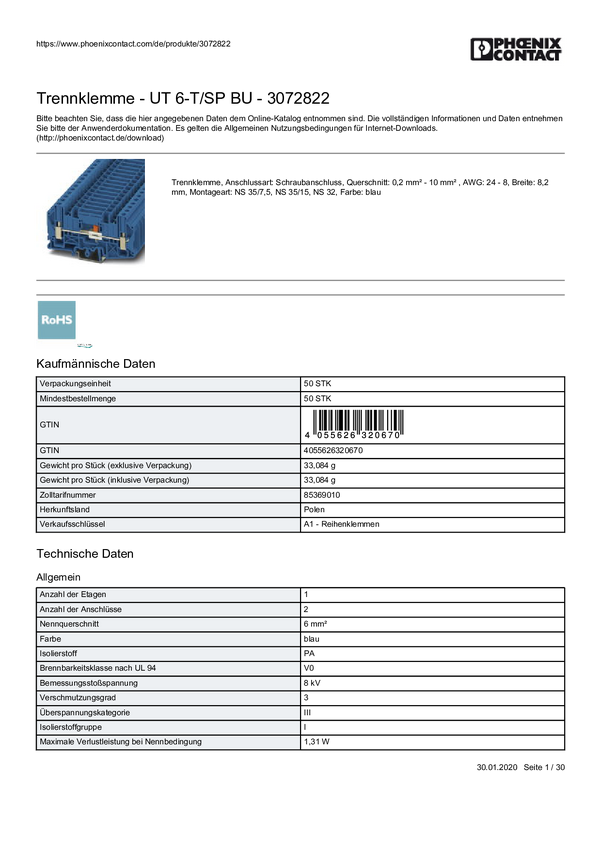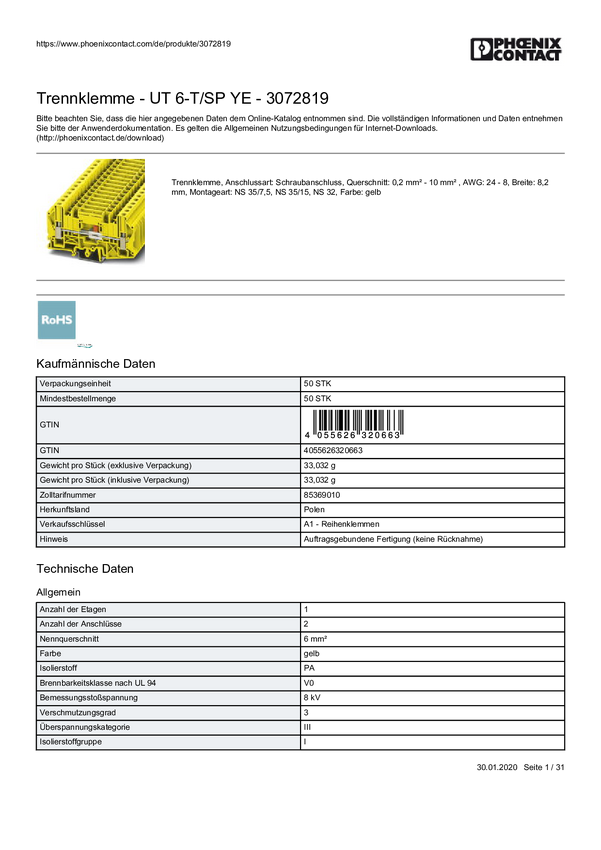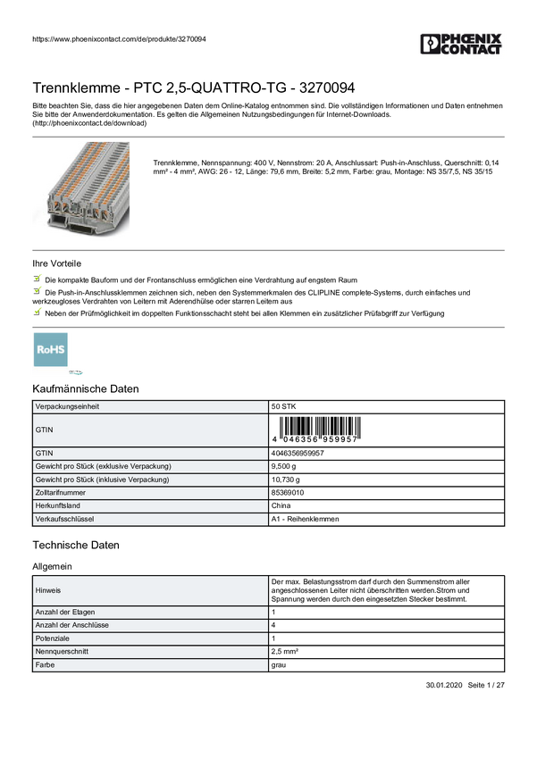 Terminal rozłączeniowy Phoenix Contact 3270094 zacisk push-in 50 szt.