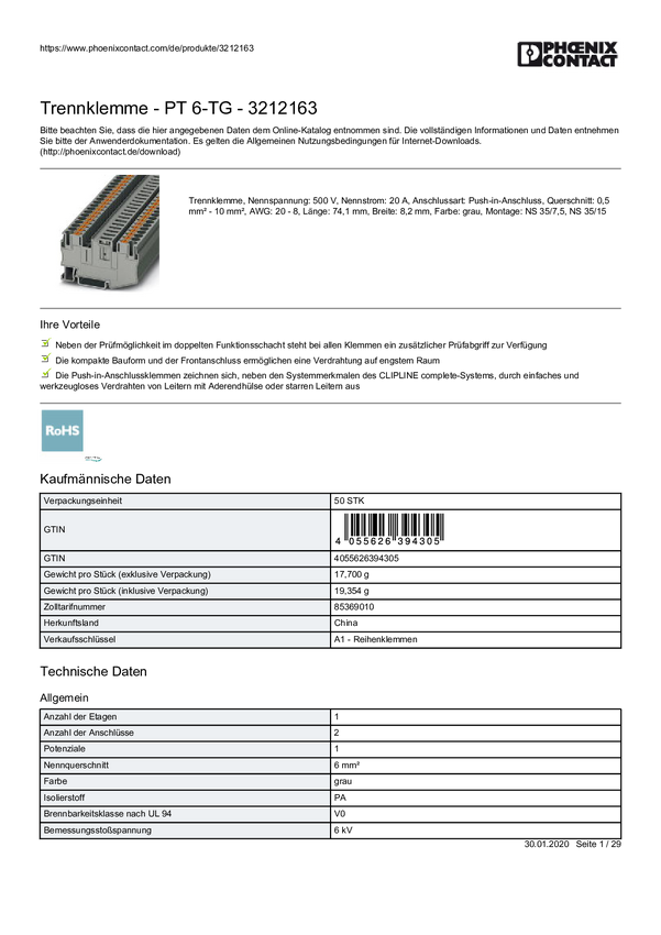 Terminal rozłączeniowy Phoenix Contact 3212163 zacisk push-in 50 szt.