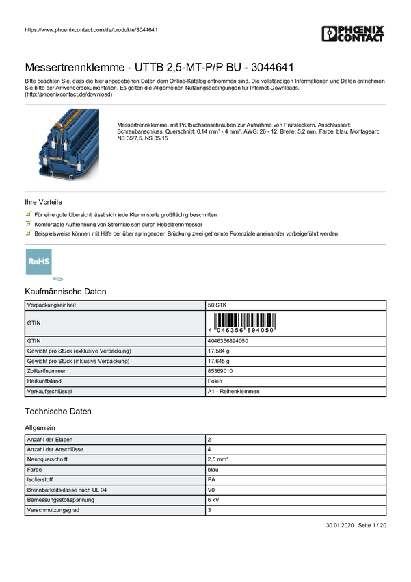 Złącze rozdzielające Phoenix Contact 3044641 śrubowe 50 szt.