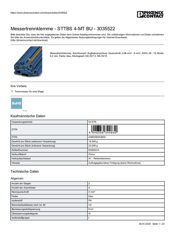Złącze rozdzielające Phoenix Contact 3035522 sprężynowe 50 szt.