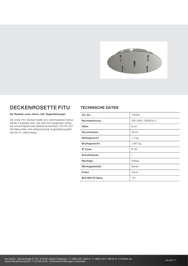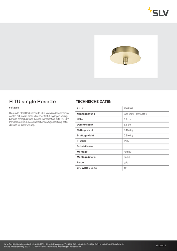 SLV FITU 1002163 Rozeta sufitowa złoty
