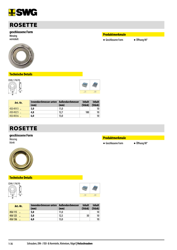 Podkładka rozetowa SWG 455412525 4.8 mm 12.7 niklowany mosiądz 100 szt.