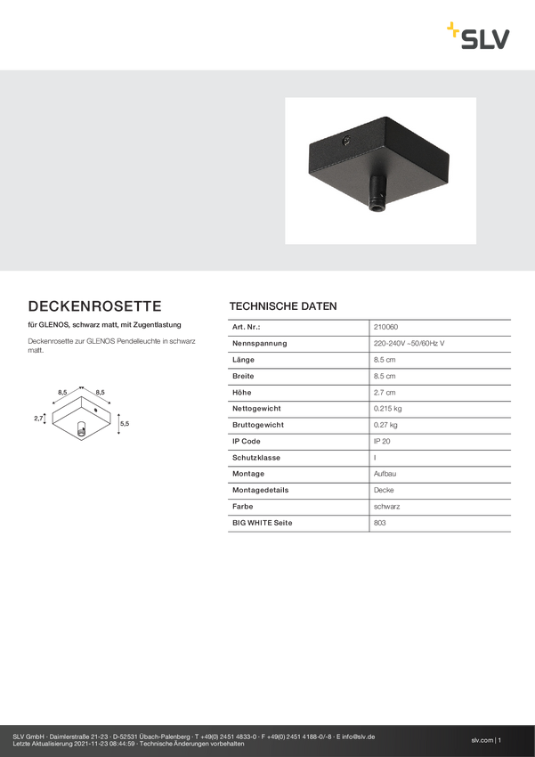 SLV GLENOS ® 210060 Rozeta sufitowa czarny