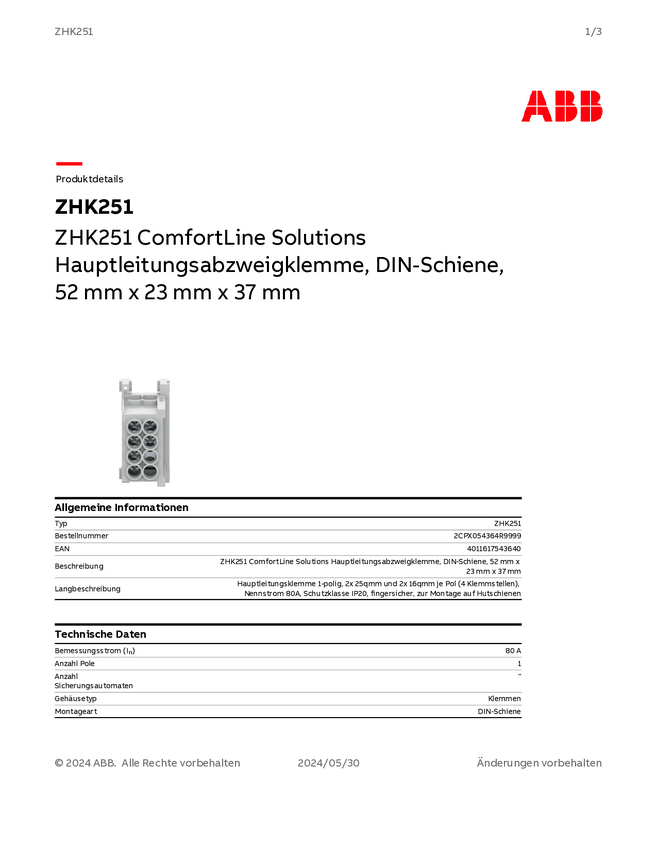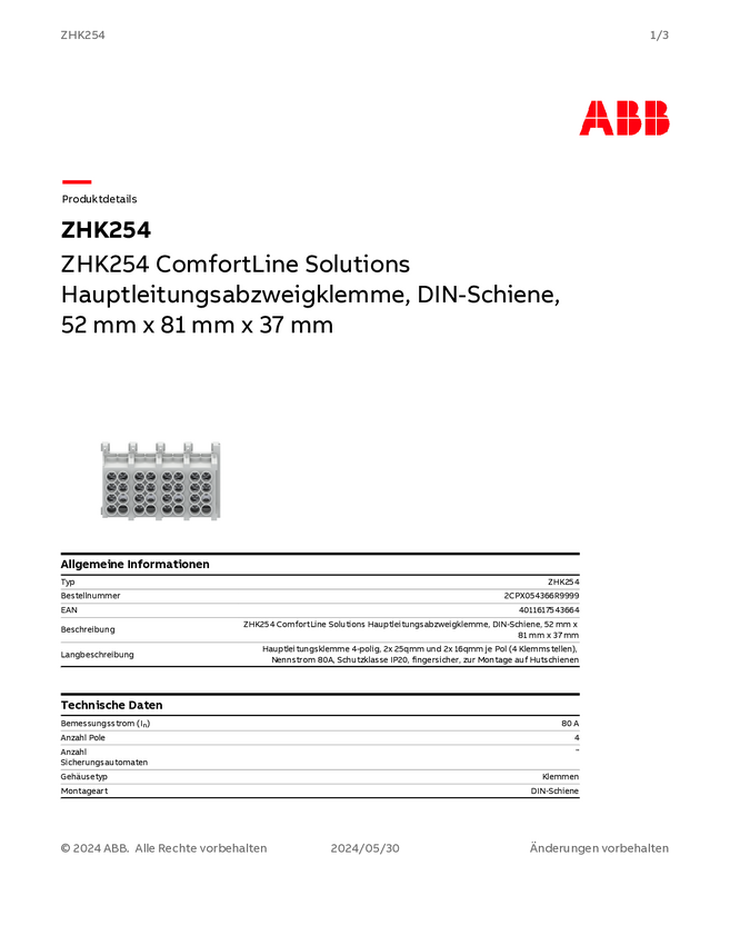 Główny terminal rozgałęzień HoraeTec 080310-1-3, 160 A