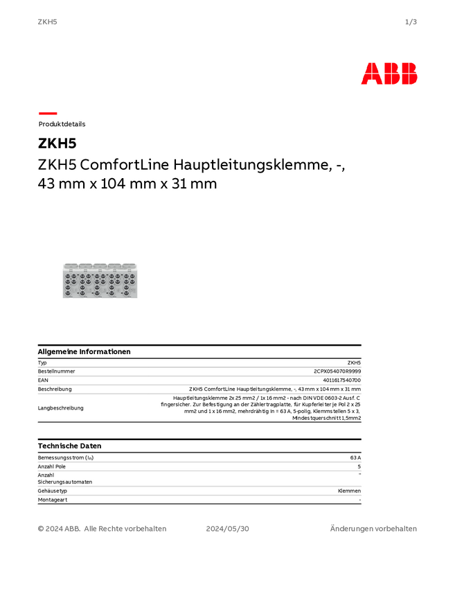 Striebel & John 2CPX054070R9999 Główny terminal rozgałęzień 1 szt.