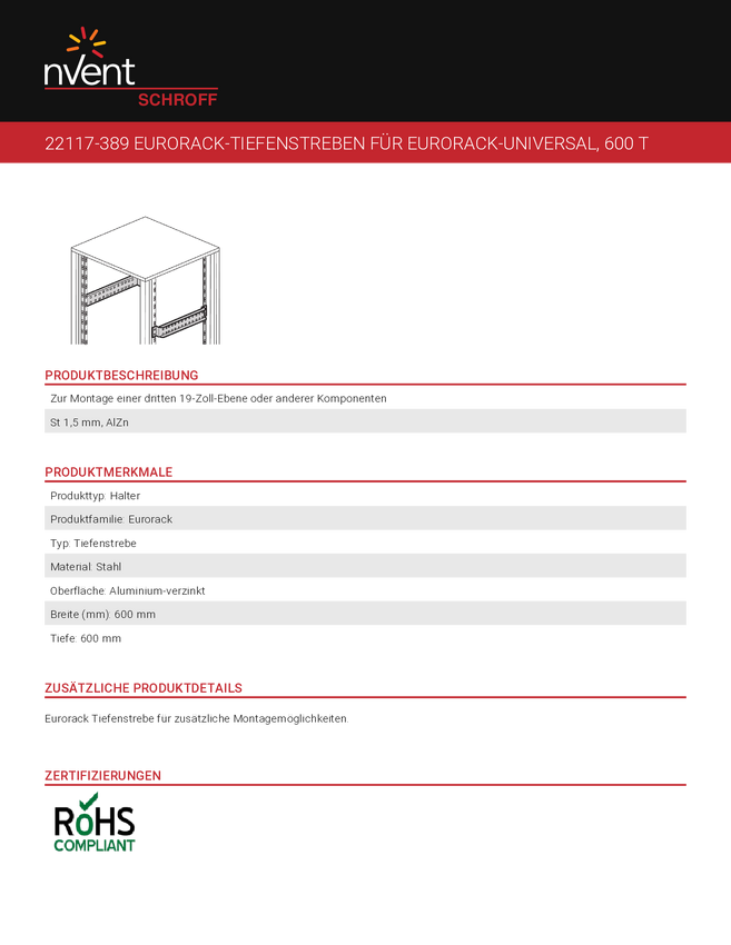 Rozpórka głębokości nVent SCHROFF 22117389 22117389, 1 szt.