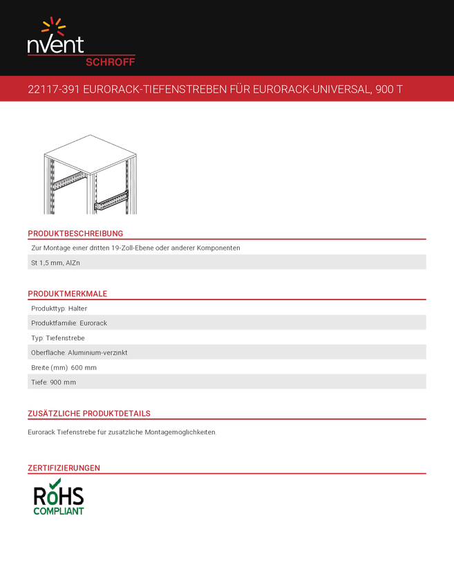 Rozpórka głębokości nVent SCHROFF 22117391 22117391, 1 szt.