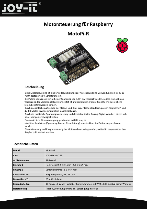 Płytka rozszerzająca Raspberry Pi® Joy-it Motorsteuerung für Raspberry