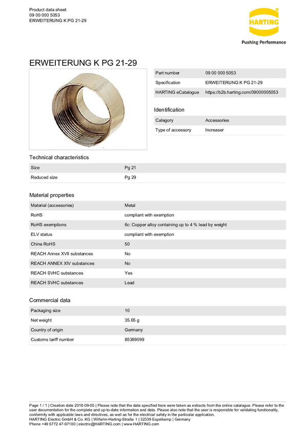 Element rozszerzający Harting 09 00 000 5053, 1 szt.