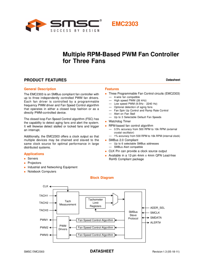 EMC2303 Multiple RPM-Based PWM Fan Controller Data Sheet (05/18/2011)