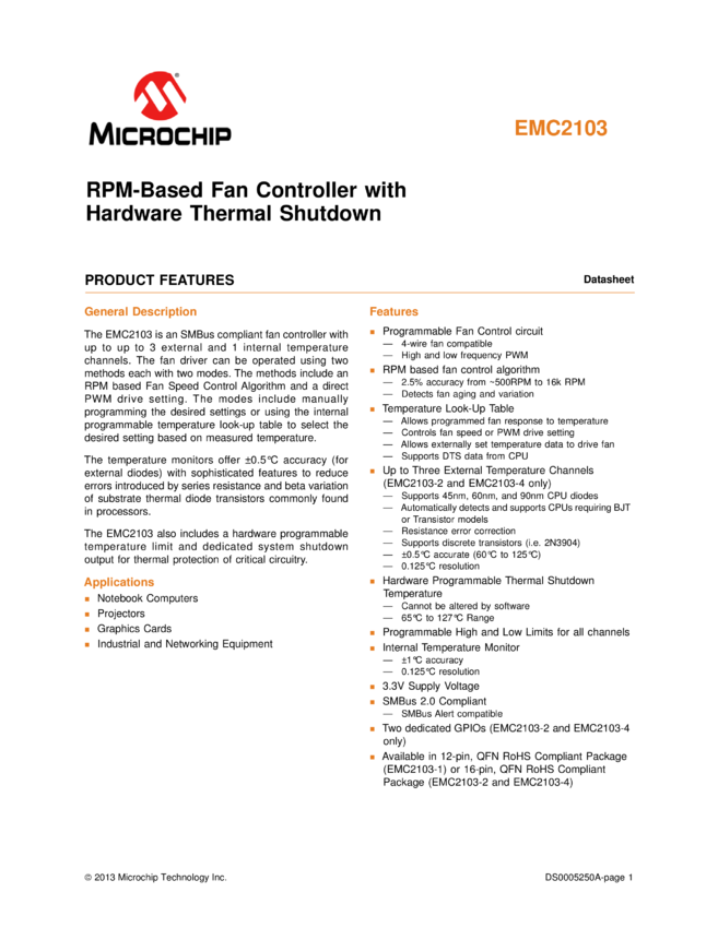 EMC2103 RPM-Based Fan Controller with Hardware Thermal Shutdown (11/19/2013)